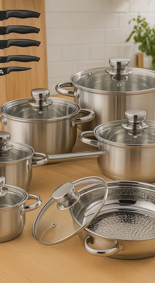 Prémium Rozsdamentes Acél Edénykészlet + Ajándék Gránit Késkészlet