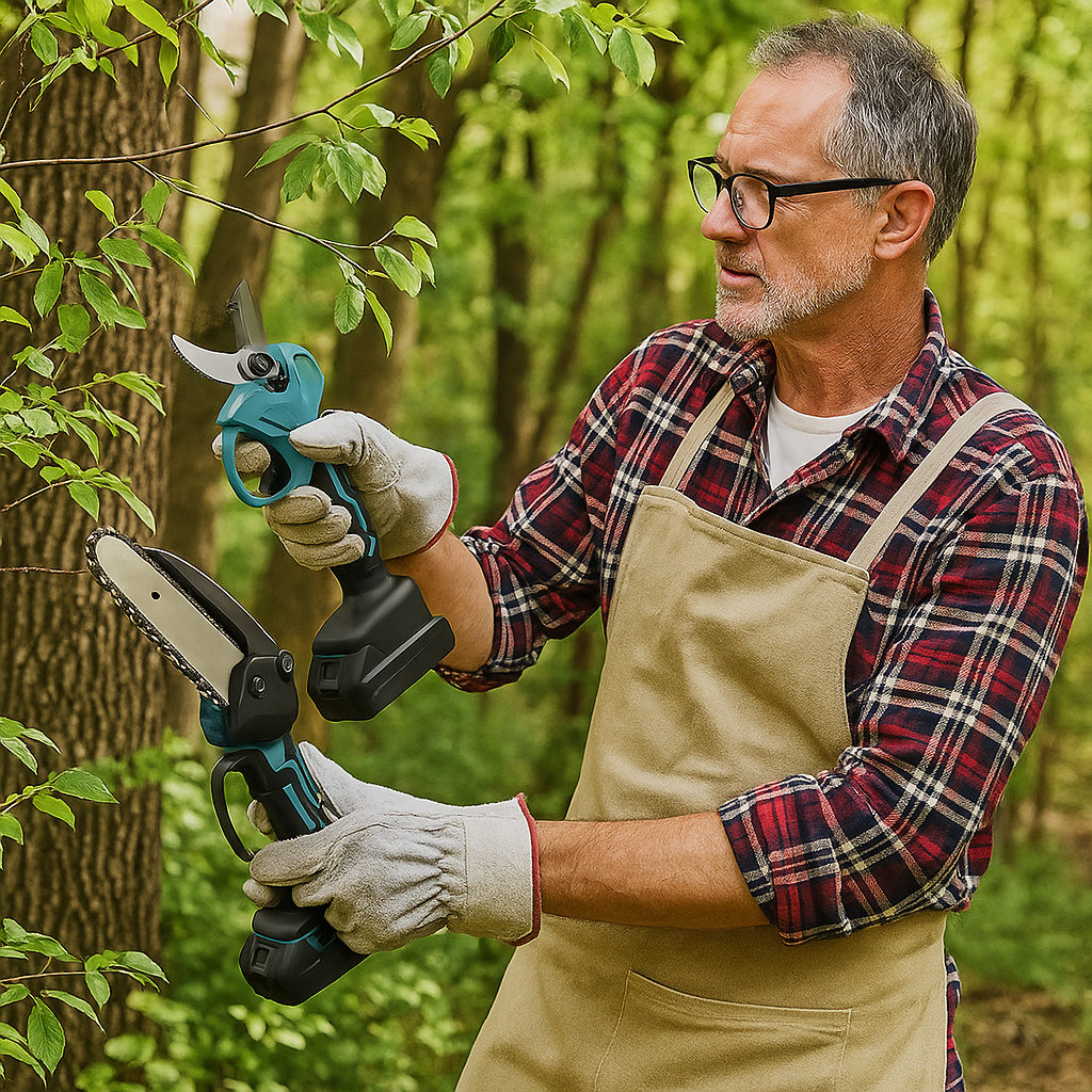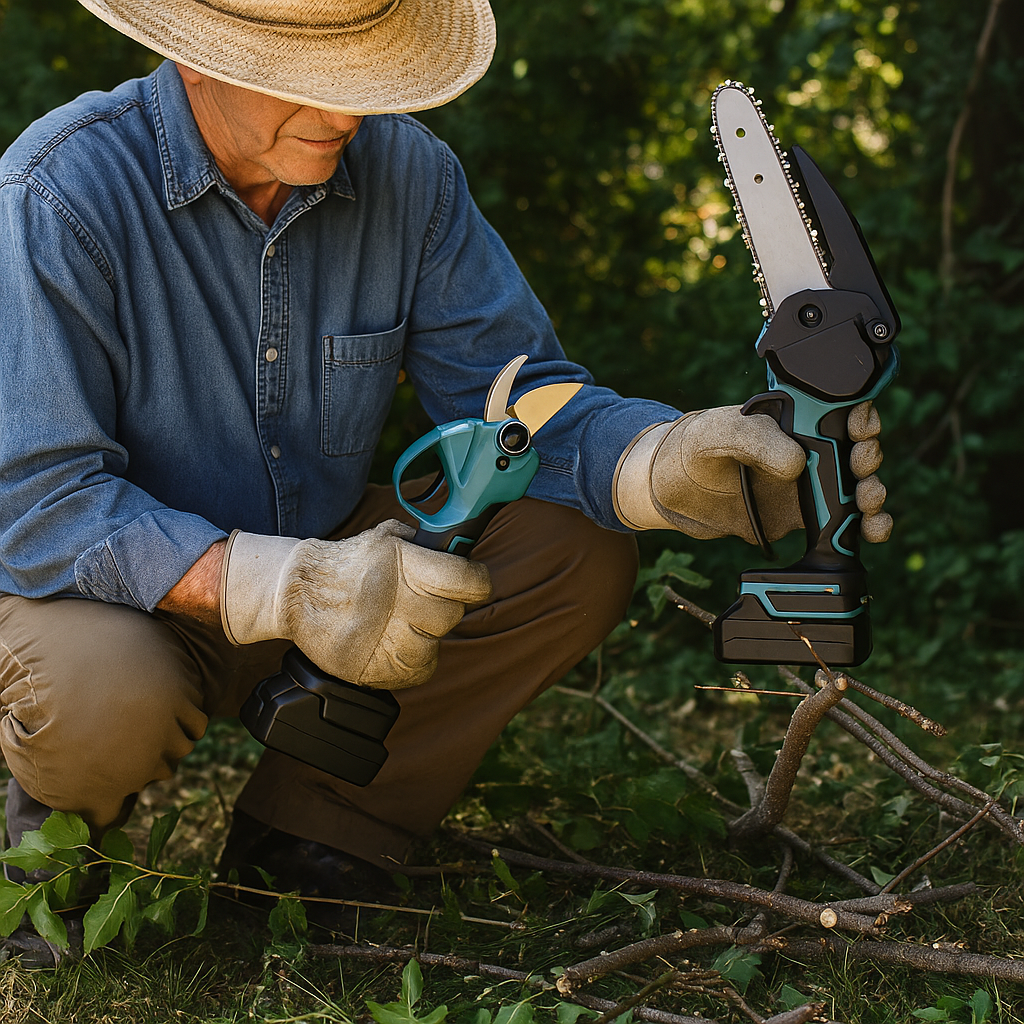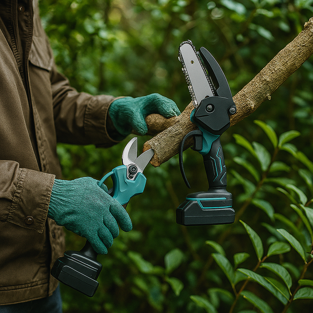 🌿 2 az 1-ben Kerti Erőcsomag – 88V Elektromos Metszőolló + Mini Láncfűrész Szett