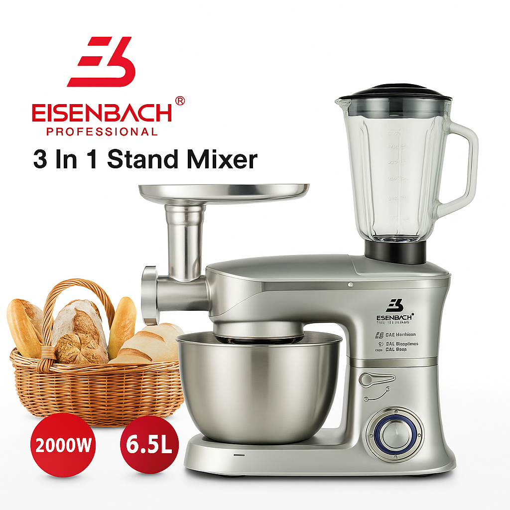 🥖 3 az 1-ben Professzionális Konyhai Robotgép – 2000W | 6,5L Tál | Turmix + Húsdaráló + Mixer Egyben
