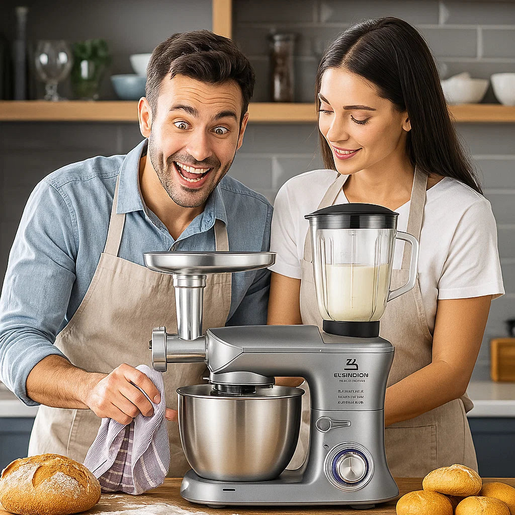 ✅ Tartozékok: dagasztókar, habverő, keverőlapát, húsdaráló és turmixfeltét