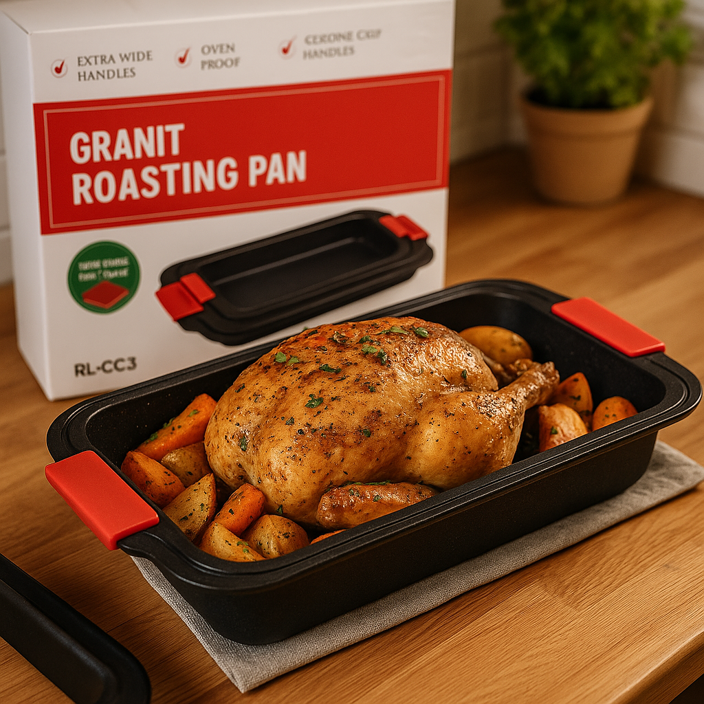 A 3 rétegű, karbonacél alapú gránit bevonat garantálja a tökéletes hőeloszlást, a tapadásmentes sütést és a könnyű tisztítást – hogy a főzés ne legyen fáradság, hanem élmény.