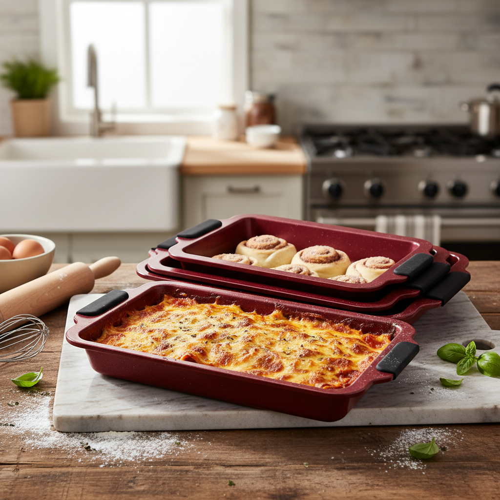 Akár húsokat, tésztákat, zöldségeket vagy süteményeket készítesz, ezekkel a tepsikkel minden étel egyenletesen sül át, megőrzi ízét és állagát.