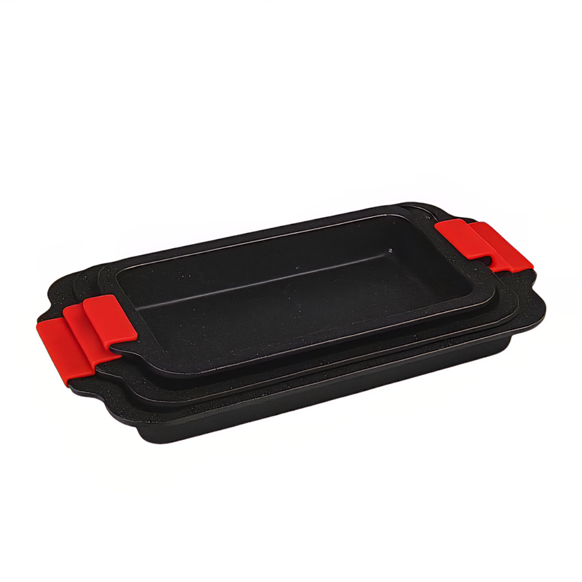 📦 A csomag tartalma: 3 db gránit bevonatú tepsi + hőálló szilikon fogantyúk