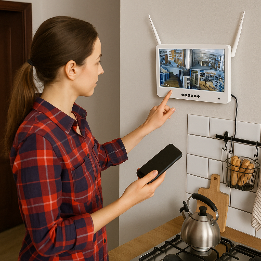 Ezzel a professzionális, mégis egyszerűen telepíthető rendszerrel HD-minőségben követheted nyomon a történéseket valós időben, akár a mellékelt monitoron, akár a mobiltelefonodra telepített alkalmazás segítségével.