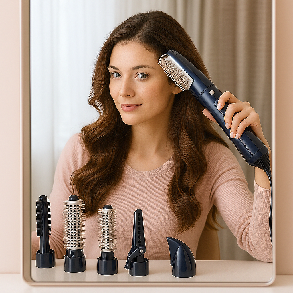 Alakítsa át haját a 7 az 1-ben többfunkciós újratölthető hajformázóval, amely egyesíti a hajszárító, hajvasaló és hajgöndörítő funkcióit egyetlen praktikus készülékben.