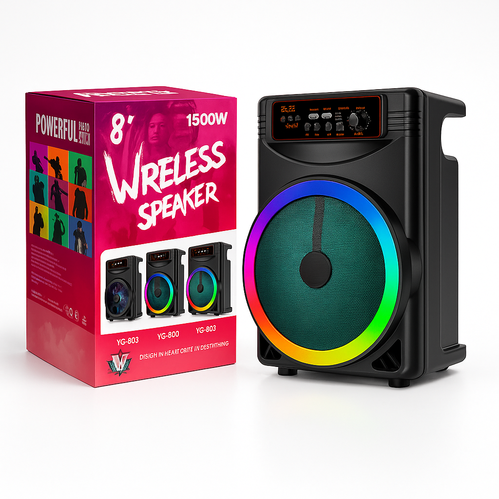 YE-803 8” Vezeték Nélküli Bluetooth Hangszóró – 1500W Teljesítmény, Lenyűgöző Basszus, RGB Világítás