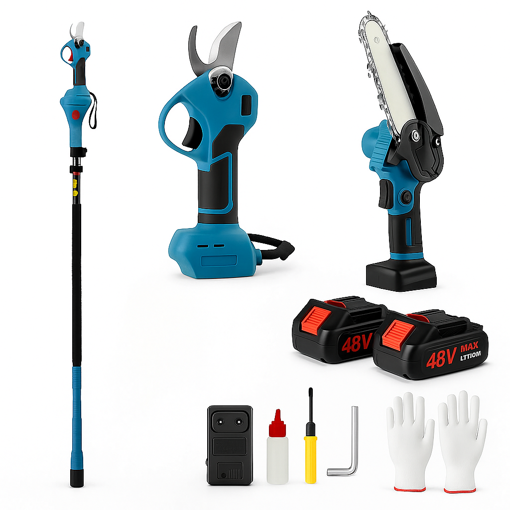 ⚙️ Supamaster SAT-1052K 48V Akkumulátoros Láncfűrész és Ágvágó Olló Szett – Teleszkópos Kivitel | Lítium-Ion Akkumulátorral | Professzionális Használatra