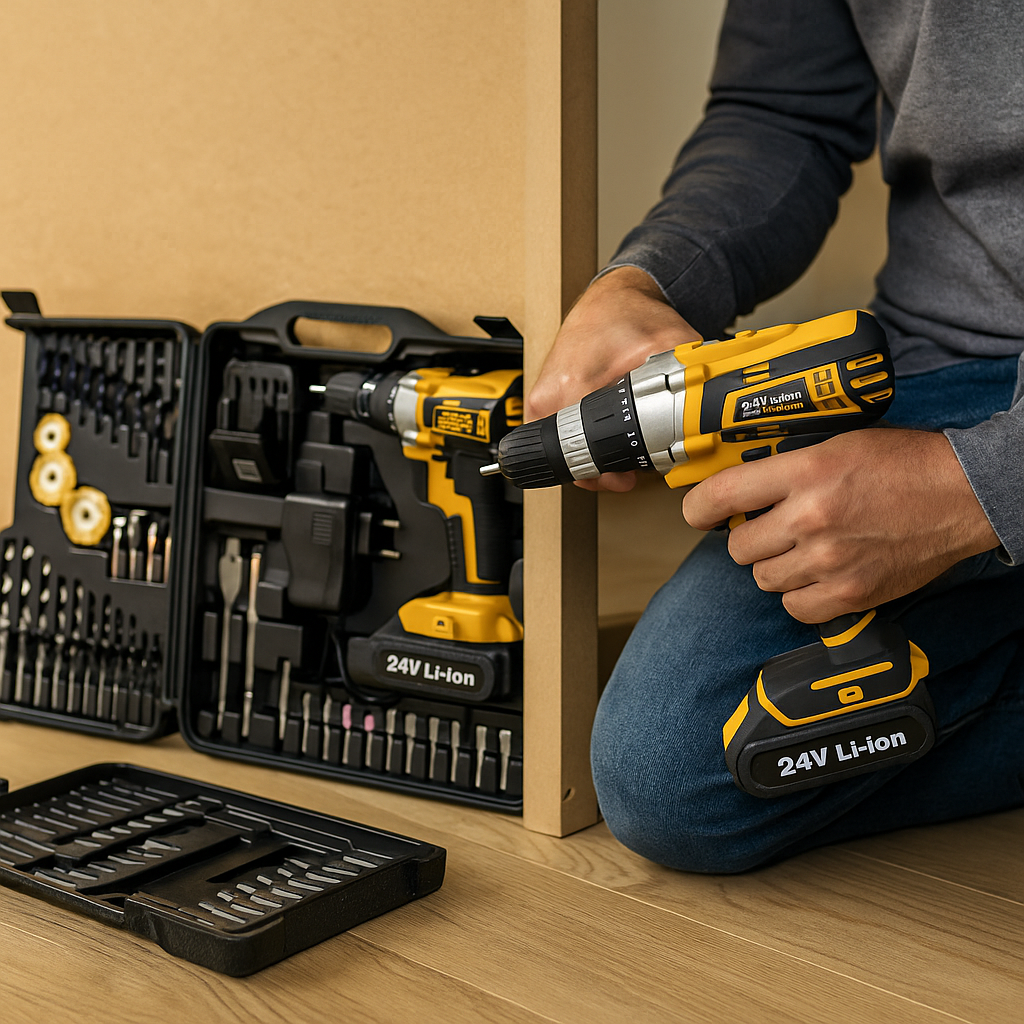 92 db kiegészítő felszereléssel rendelkezik, amelyekkel szinte bármilyen feladatot elvégezhet, beleértve a fúrást, csavarozást, ütvefúrást és a különböző anyagok kialakítását.