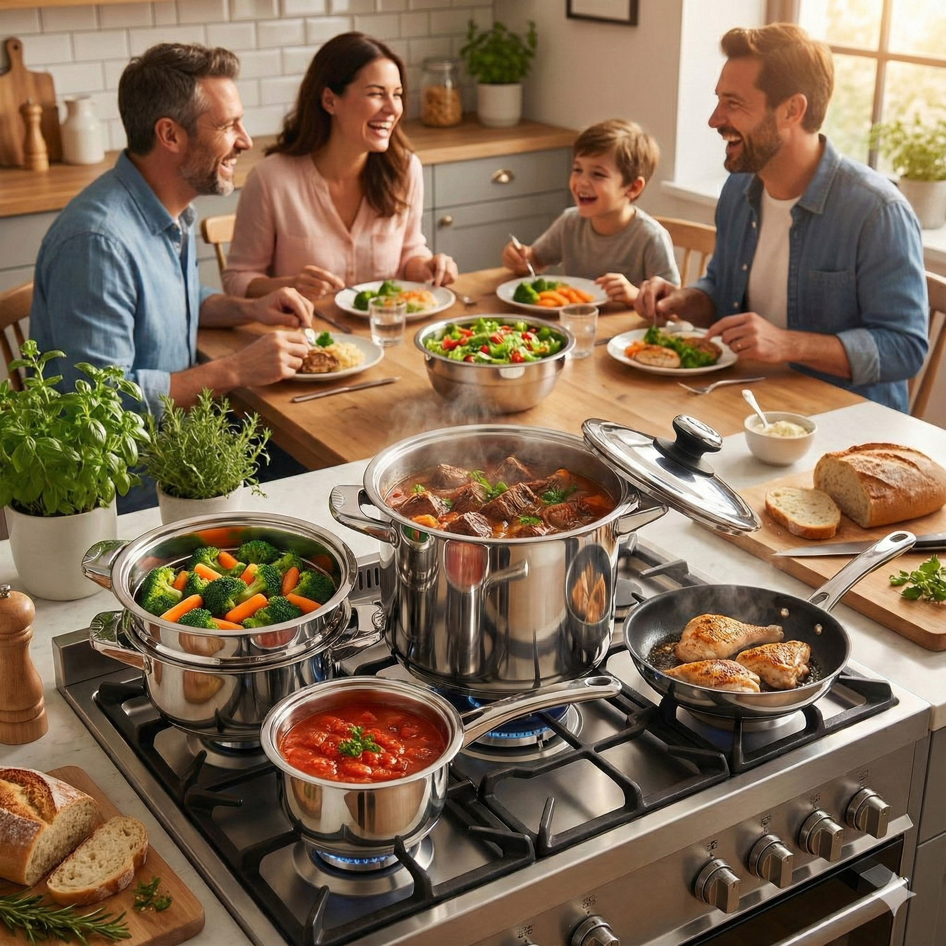 - Egy szett minden főzési feladathoz – leves, tészta, párolás, sütés