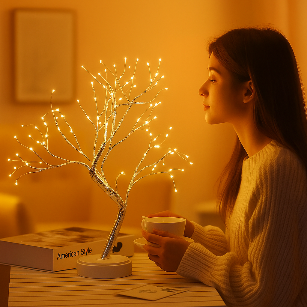 A Dekoratív LED Csillámló Fa nem csupán lámpa – ez egy művészi fénydekoráció, amely meghittséget, eleganciát és nyugalmat visz bármilyen térbe.