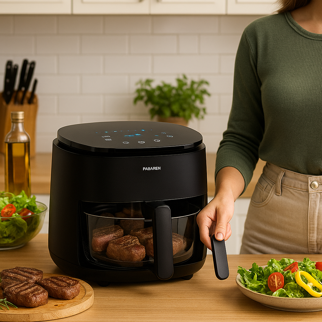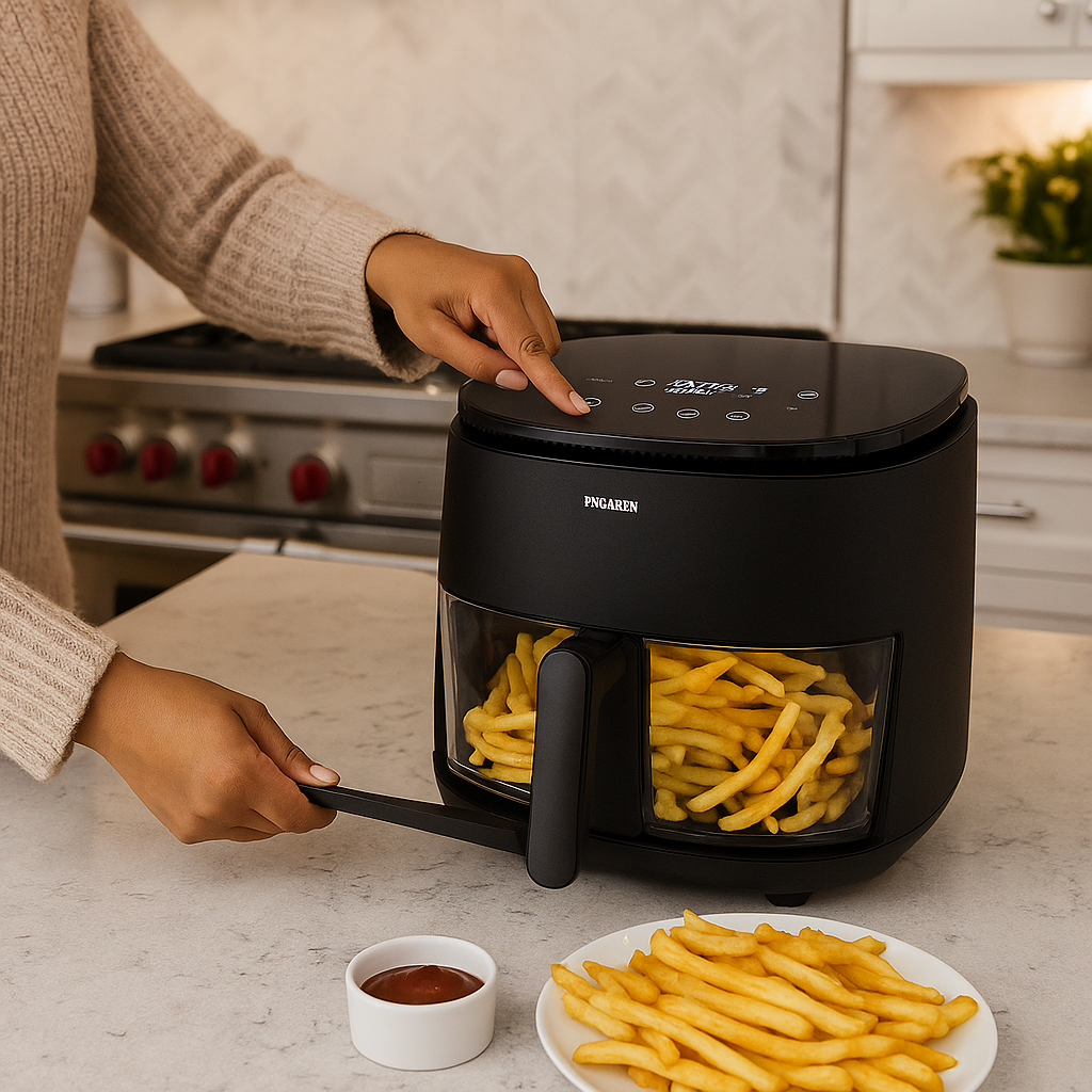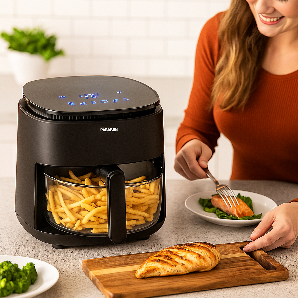 ✨ Digitális Forrólevegős Sütő – Üvegből készült elegancia, ami megváltoztatja, ahogy főzöl.