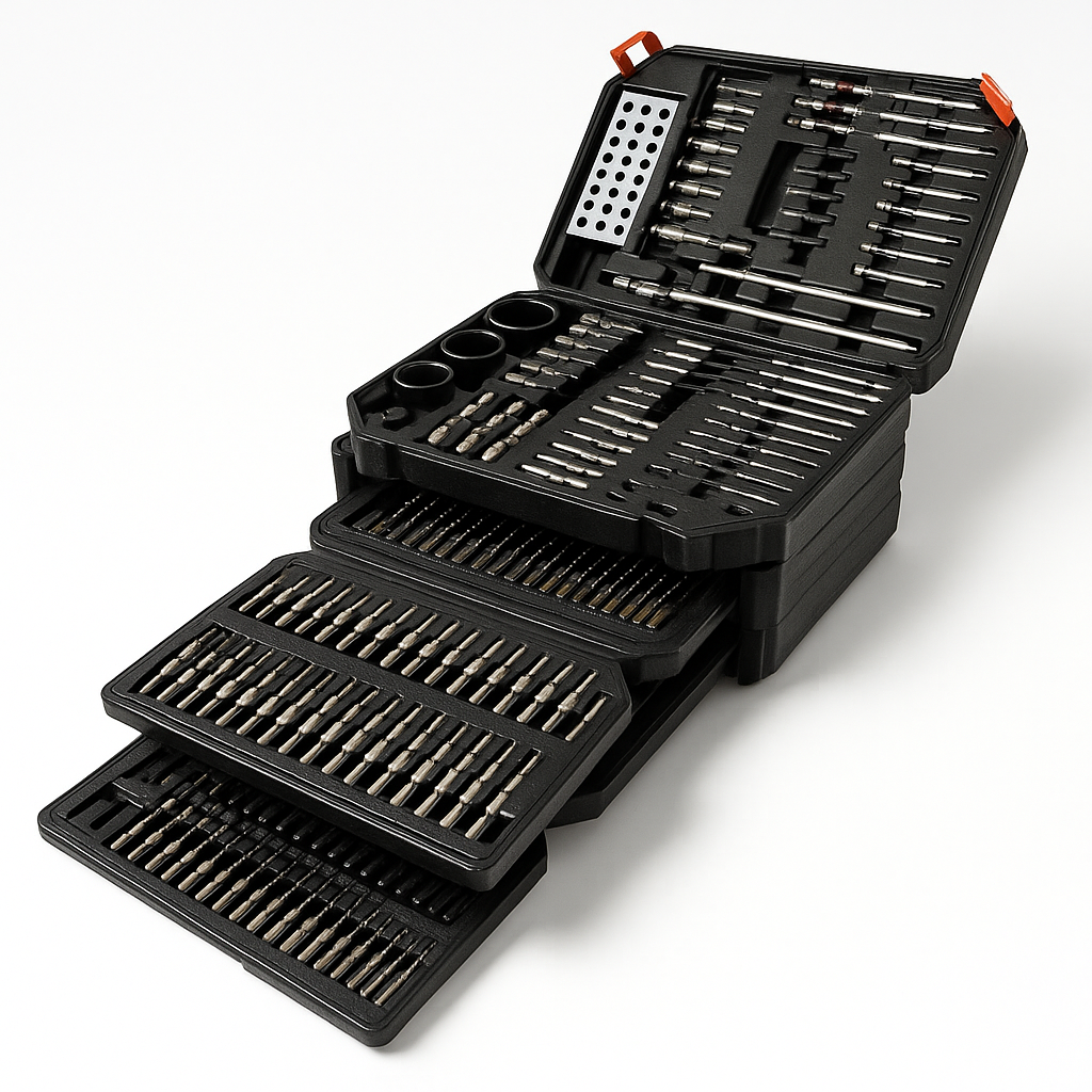 300 darabos készlet: Számos fúrószárat tartalmaz, amelyek precíz és professzionális fúrást tesznek lehetővé különböző anyagokhoz.