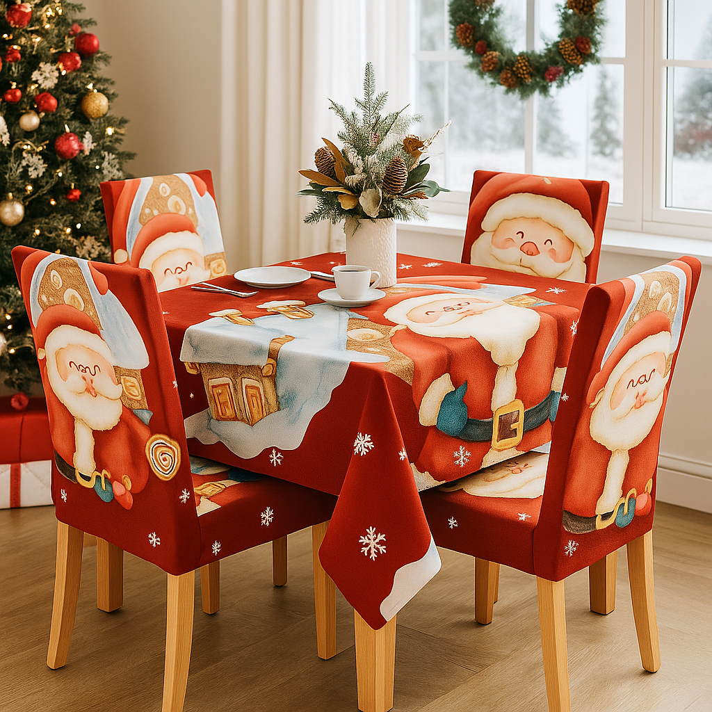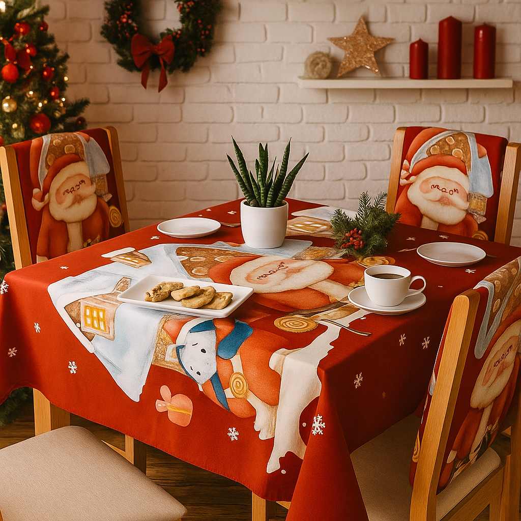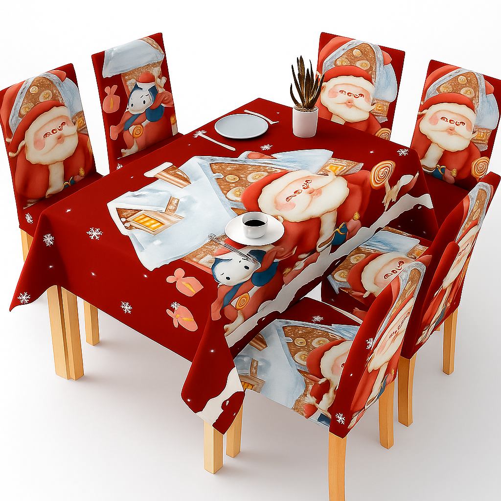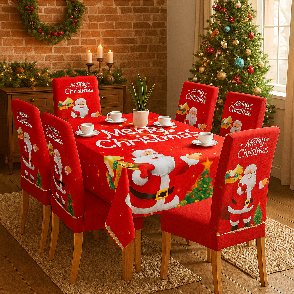 Karácsonyi 7 Részes Asztalterítő és Székhuzat Szett