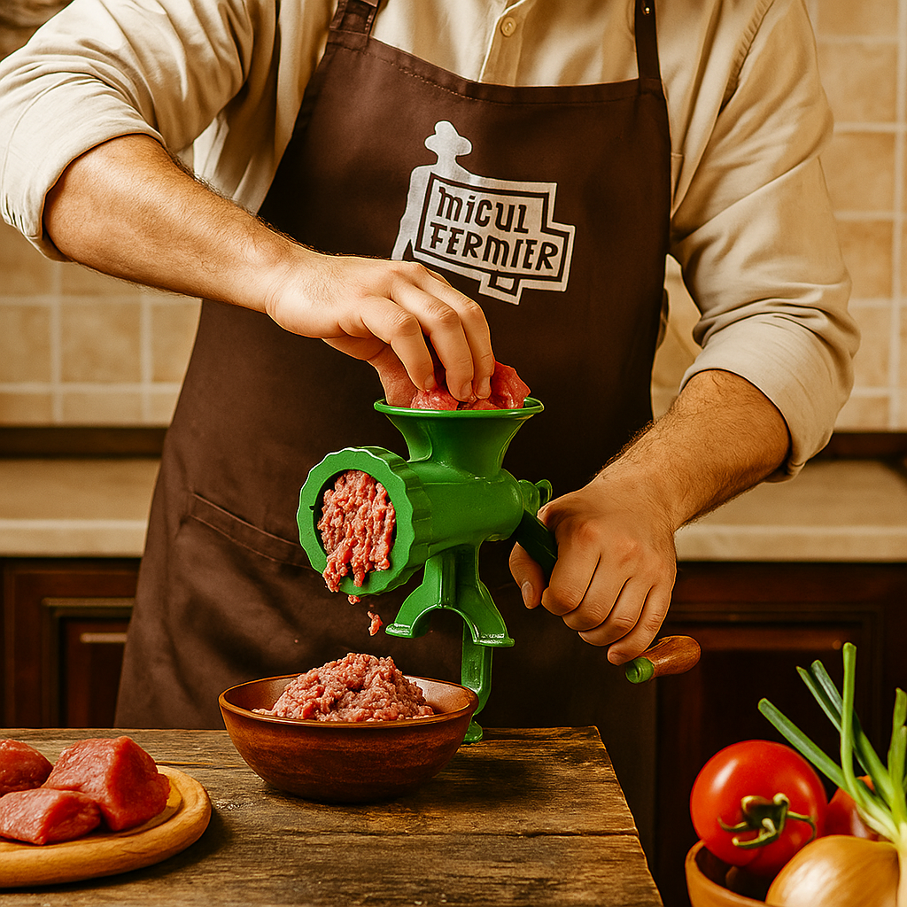 A Micul Fermier GF-0061 öntöttvas húsdaráló a klasszikus, kézi húsdarálók legjobb hagyományait ötvözi a modern megbízhatósággal.