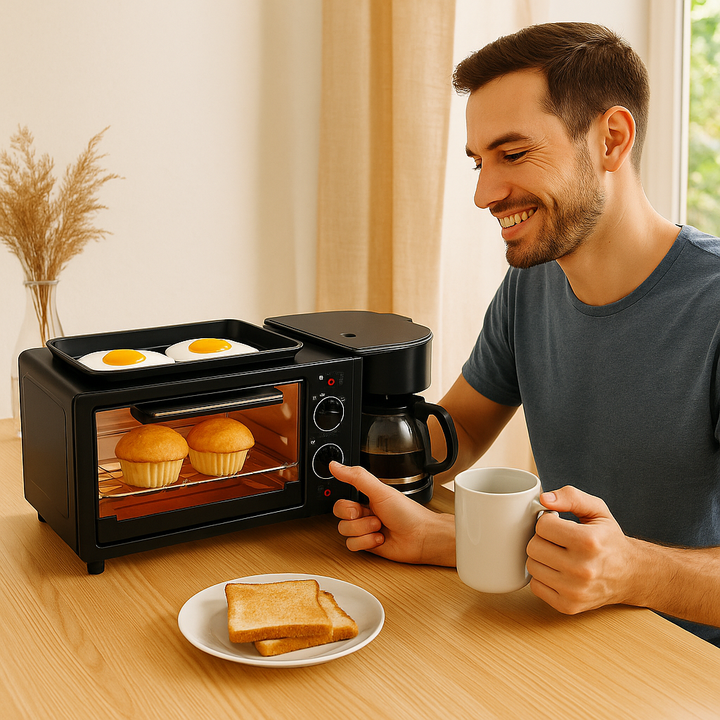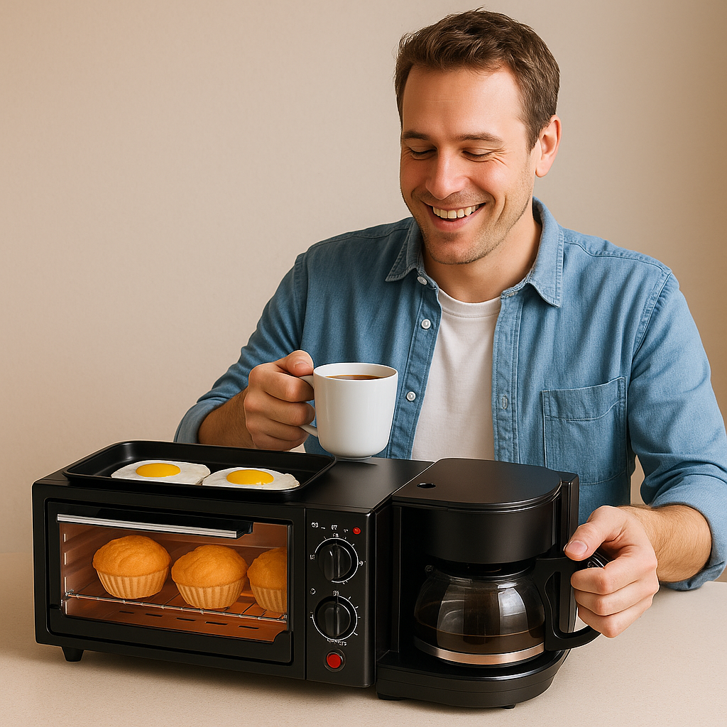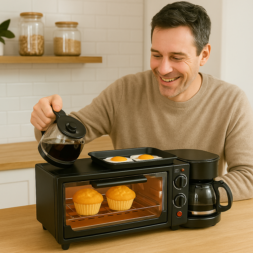 A 3 az 1-ben Multifunkciós Reggeliző Készülék a modern otthonok és a kis helyiségek tökéletes megoldása. Kompakt mérete ellenére mindent tud, amire szükséged van egy teljes reggelihez:
