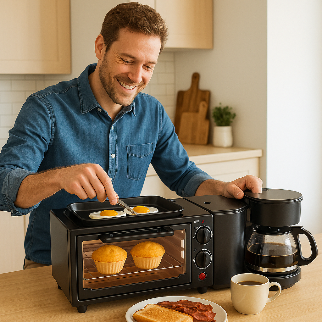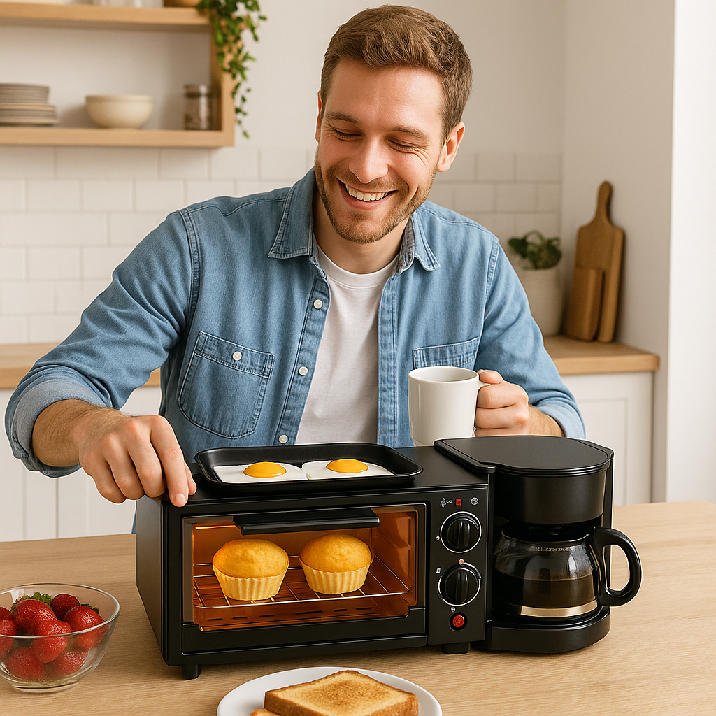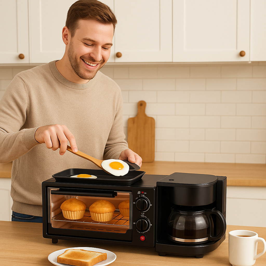 A 3 az 1-ben Multifunkciós Reggeliző Készülék a modern otthonok és a kis helyiségek tökéletes megoldása. Kompakt mérete ellenére mindent tud, amire szükséged van egy teljes reggelihez: