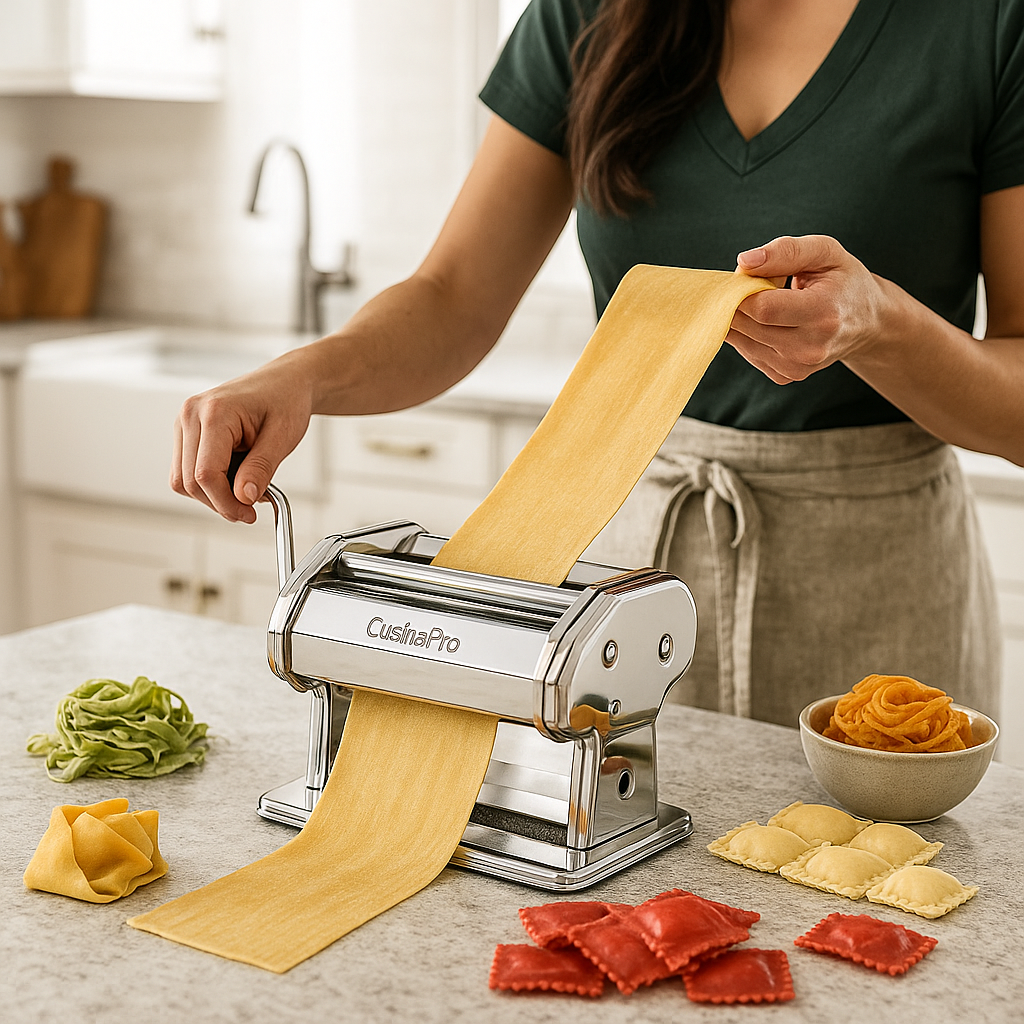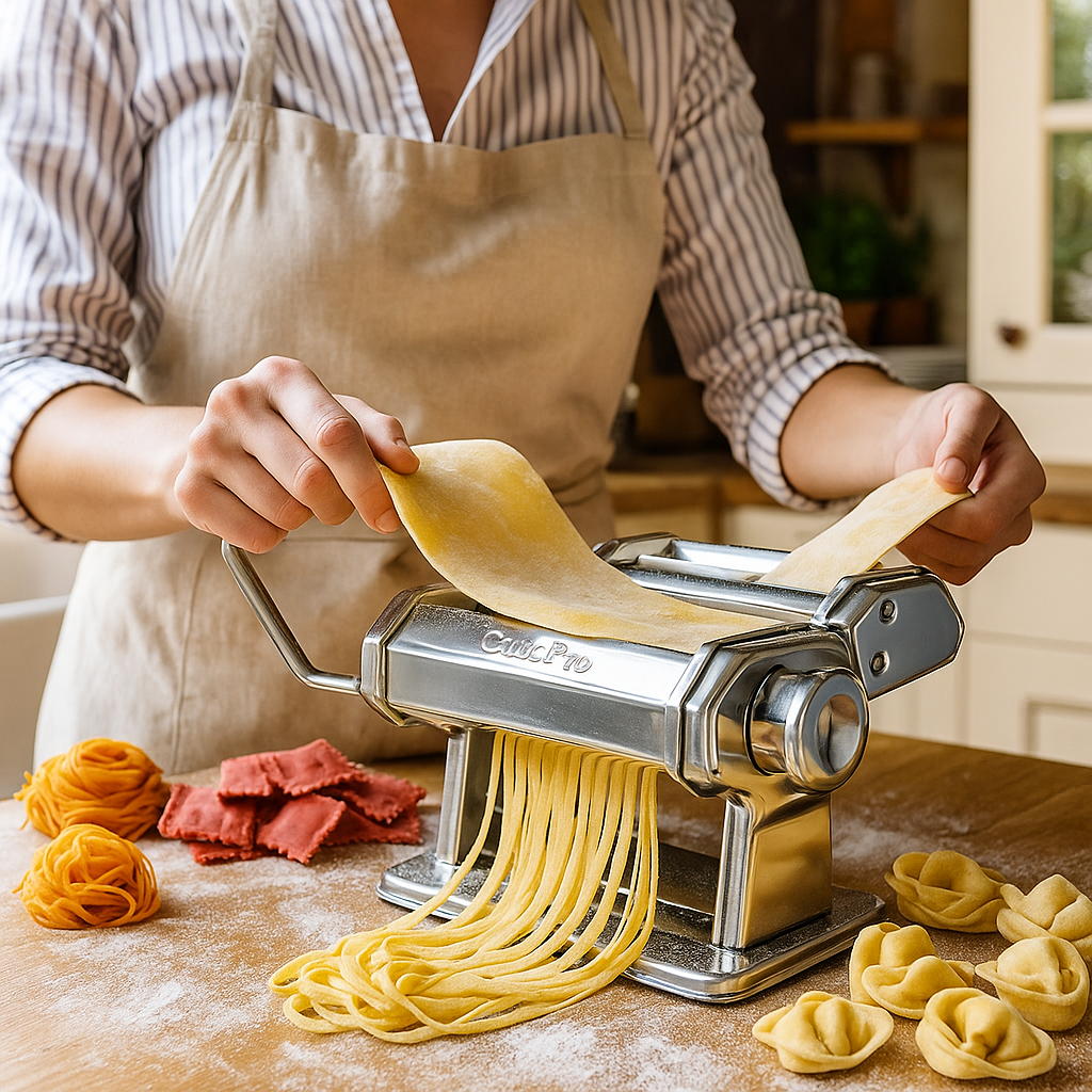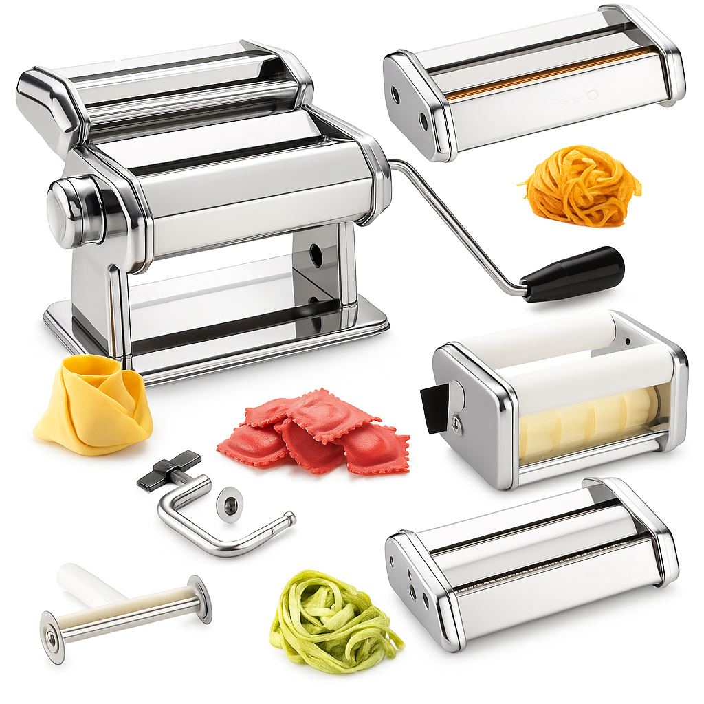 A rozsdamentes acél tésztagép segítségével a friss házi tészta készítése gyors, egyszerű és élvezetes lesz.