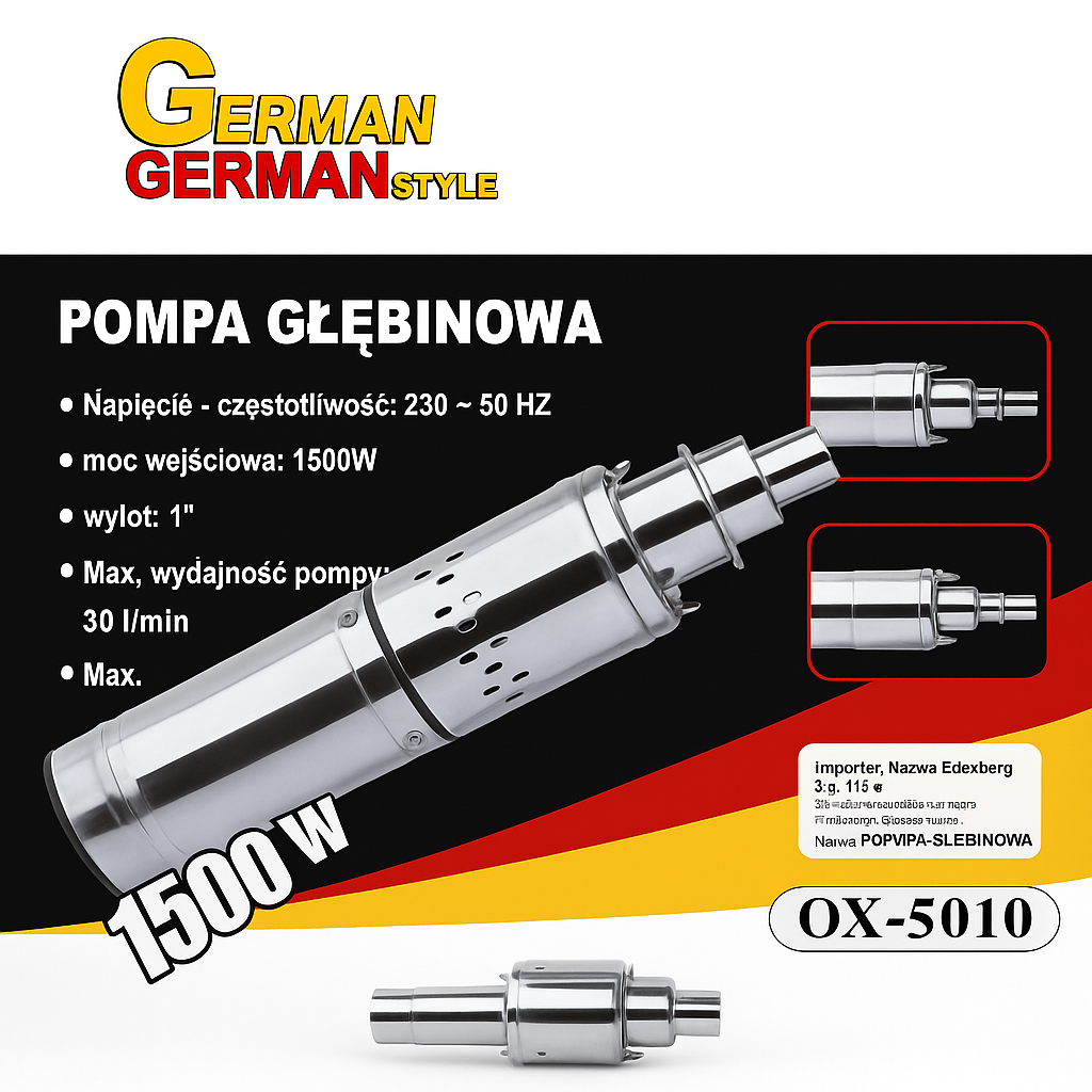 OX-5010 Profi Mélykúti Búvárszivattyú 1500W – Maximális Teljesítmény, Hibátlan Vízellátás, Strapabíró Kialakítás!