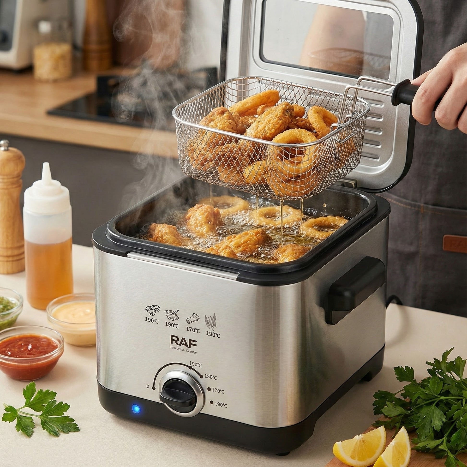A RAF R.5300 olajsütő azok kedvence lesz, akik a ropogós, aranybarna és tökéletesen átsült ételeket éttermi minőségben szeretnék elkészíteni – otthon, gyorsan, biztonságosan és rendetlenség nélkül.