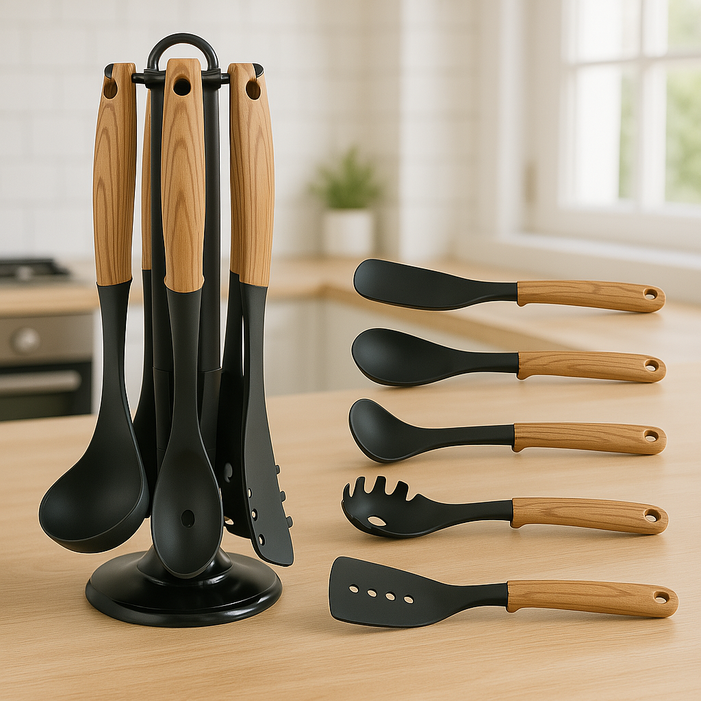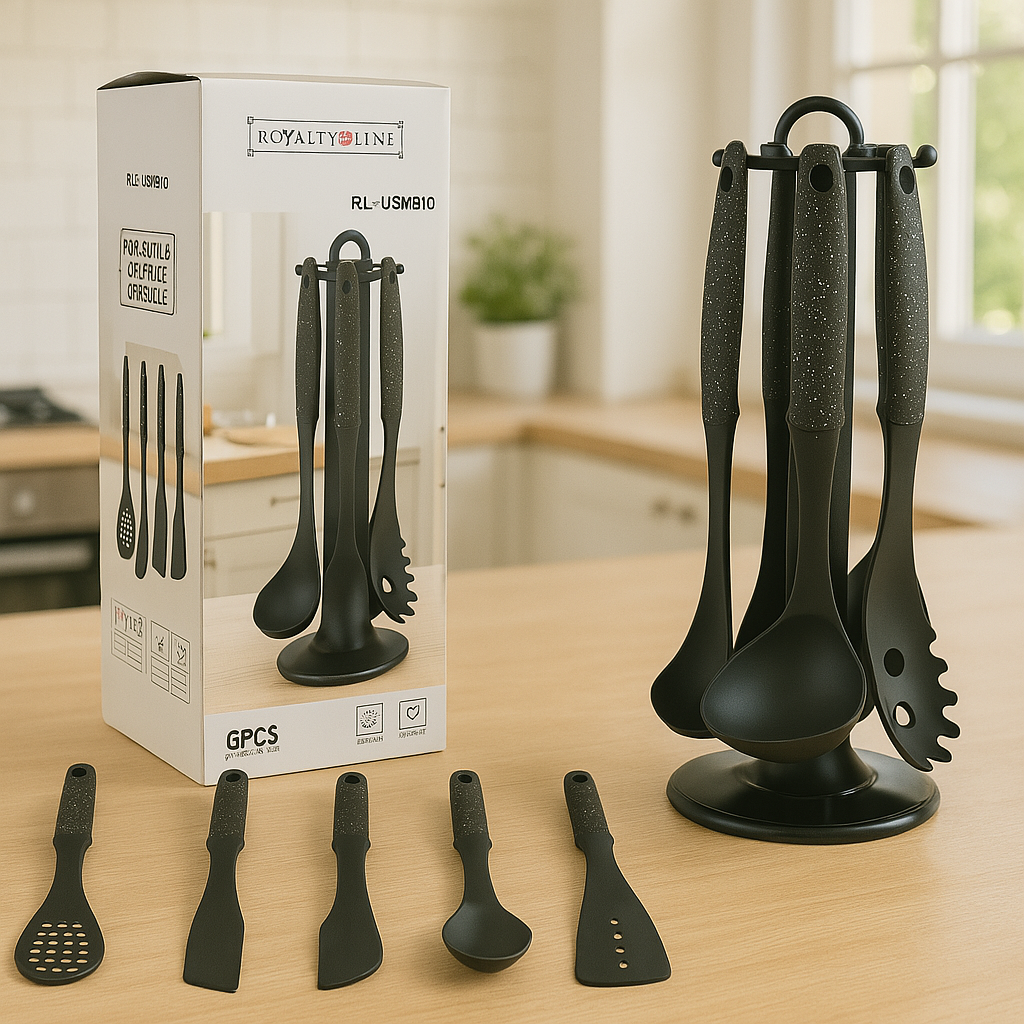 Bemutatjuk a Royalty Line RL-U06 konyhai eszközkészletet, amely minden szakács alapvető segítőtársa lehet. Kivételes tartósság, BPA-mentes anyagok és praktikus tervezés jellemzi, amely kényelmet és stílust visz a főzésbe.