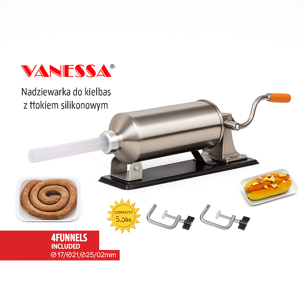 A VANESSA kolbásztöltő gép a tökéletes eszköz minden húsimádó számára, aki nem ismer kompromisszumot a minőségben.