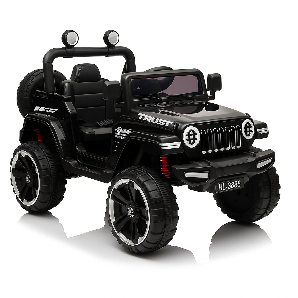 Erős és Realisztikus Tervezés: 24V-os motor, állítható biztonsági öv, zárható ajtók és rácsos szélvédő az off-road stílushoz.