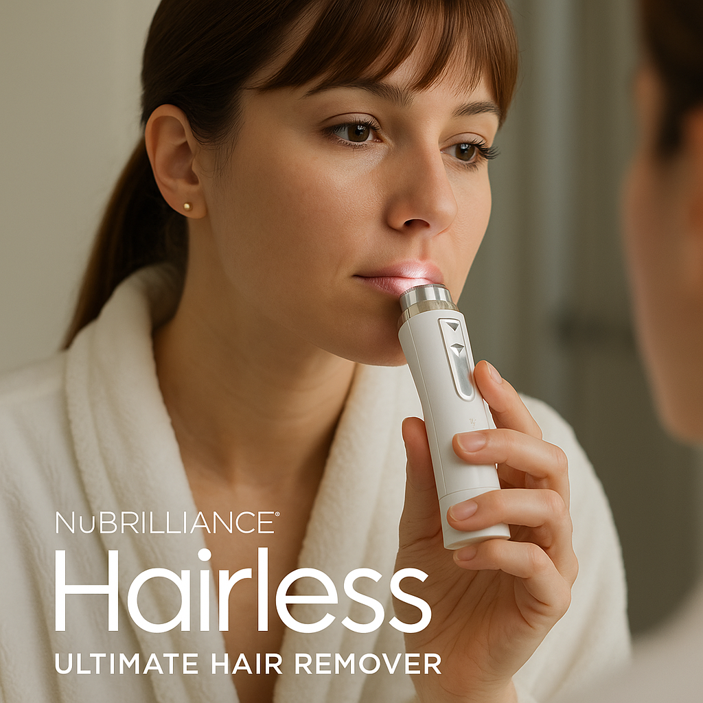 A Nu Brilliance Hairless a legkényelmesebb és legbiztonságosabb megoldás az otthoni arcszőrtelenítéshez. Vége a fájdalmas gyantázásnak, az irritáló borotválkozásnak vagy a drága kozmetikai kezeléseknek! A titán hipoallergén fej és a mikrorezgéses technológia segítségével a Hairless gyengéden, mégis hatékonyan távolítja el a nem kívánt szőrszálakat – teljesen fájdalommentesen.