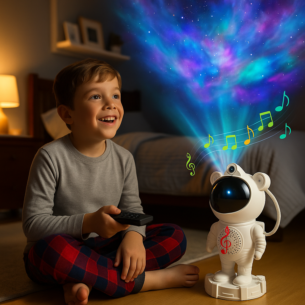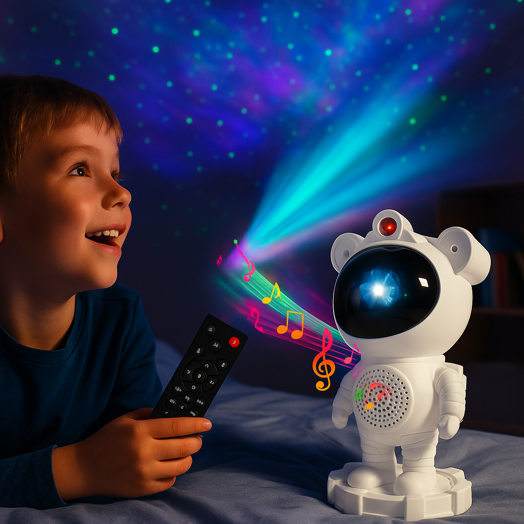 🌌 Űrhajós Csillagprojektor Bluetooth Hangszóróval – 1+1 AJÁNDÉKBA! | Zenei és Fényhatások | Távirányítóval