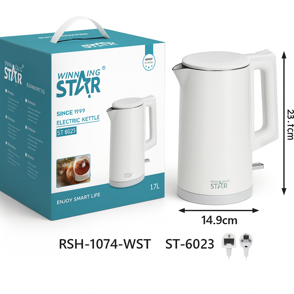 🔥 Winning Star ST-6023 Elektromos Vízforraló – 1500W, 1.7L – Prémium dupla falú kialakítás