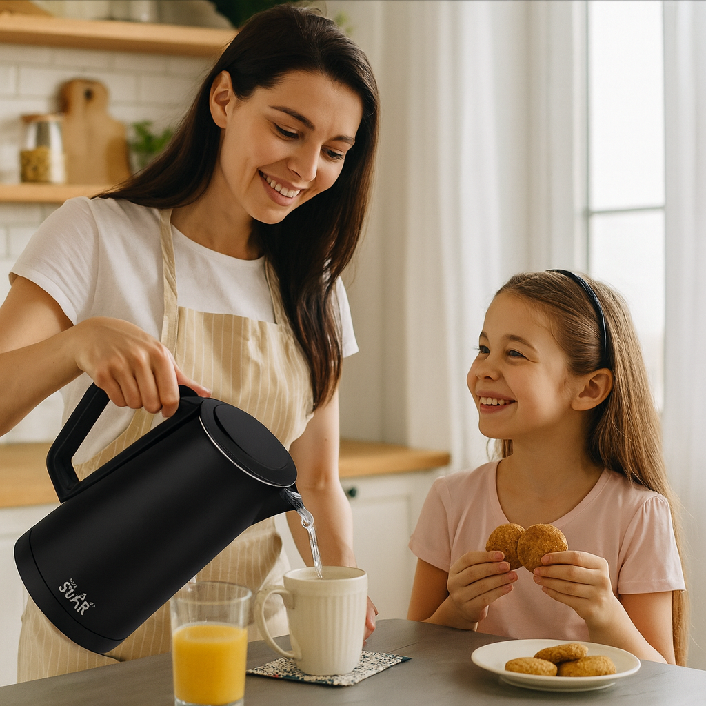 A dupla falú hőszigetelt kialakításnak köszönhetően kívül hűvös marad, miközben belül rekordidő alatt eléri a forráspontot. Tökéletes választás családoknak, irodába, kollégiumba vagy bárkinek, aki gyorsan, biztonságosan és elegánsan szeretne vizet forralni.